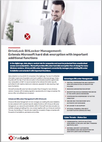 DriveLock BitLocker Management extends the management capability and functionality of Microsoft BitLocker....