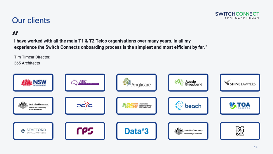 Switch Connect is an Australian technology and communication company established in 2015. Our philosophy is simple: technology and communications should empower, not overwhelm.